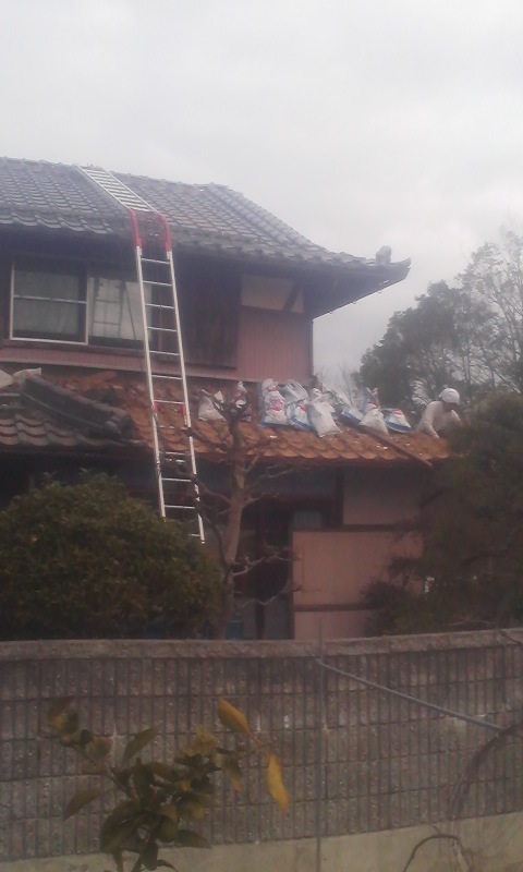 大屋根が熨斗積み以外が済んだんで、今日から下屋根の瓦降ろしにかかりました