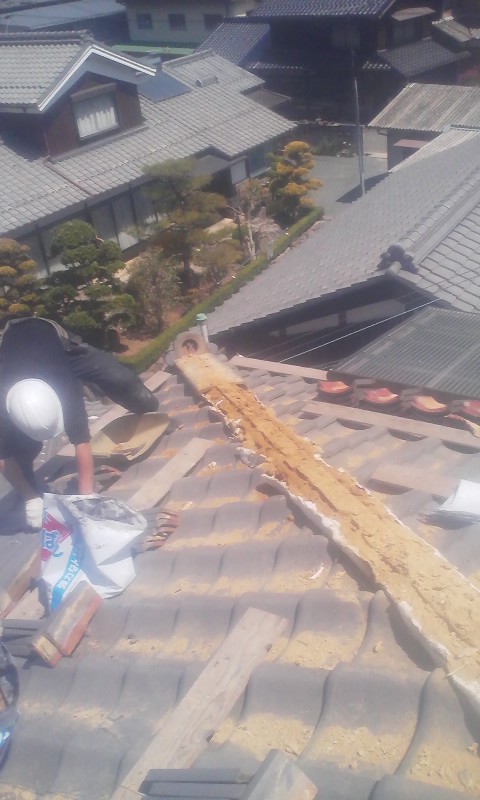 今日からY工務店の仕事で、のしの積み替え工事に入ってます 天気もいいし、ぽかぽか陽気の中、順調に棟を潰してます