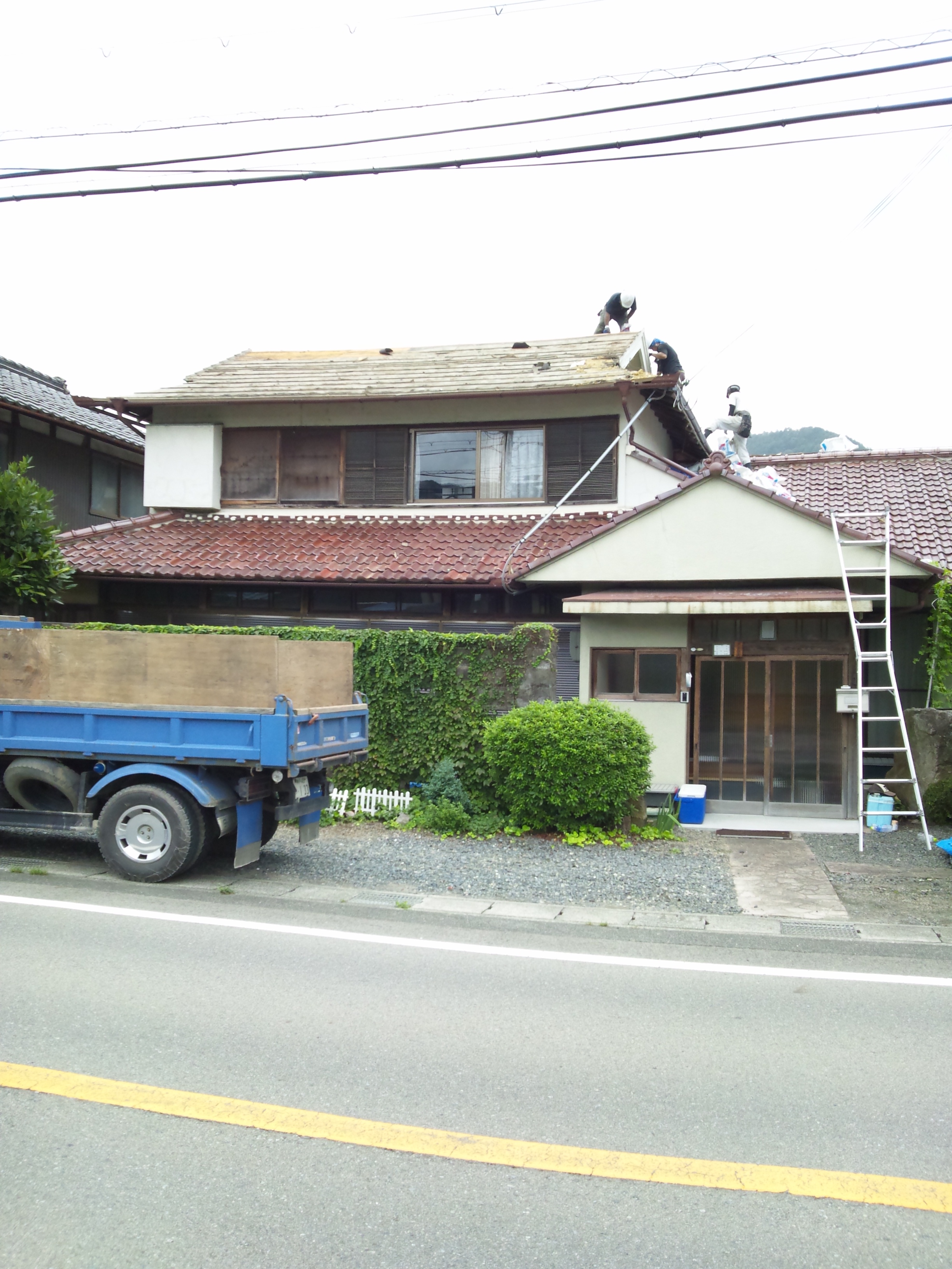 月曜は写真の現場の瓦下ろし… 火曜は福知山の現場の瓦下ろし… 昨日はこの現場の瓦上げ…